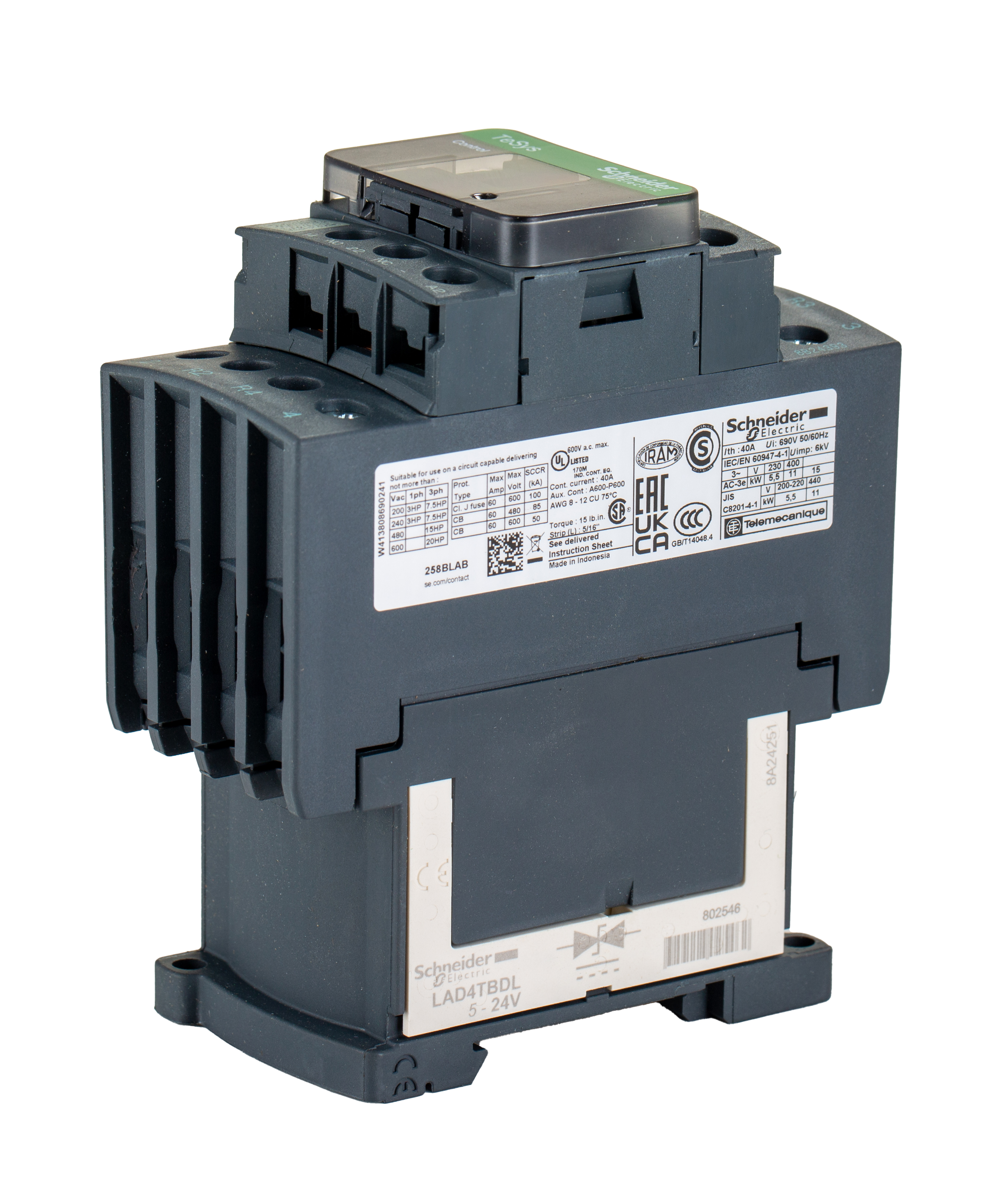 13. Stycznik 24 V dc Schneider Electric styki: 4 40 A 2NO + 2NC Montaż na szynie DIN Śruba LC1D258BL 1011.86