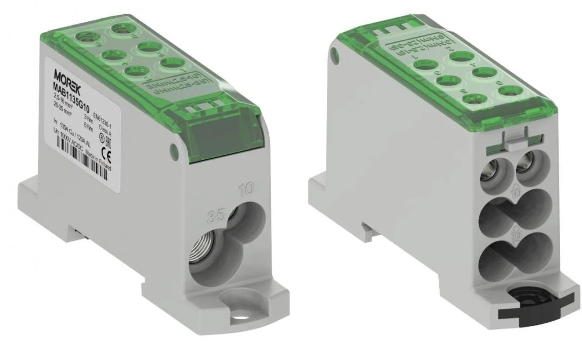 5. Blok dystrybucyjny - rozdzielczy OJL135A zielony AL/CU we:1x2,5-35mm2 /1x2,5-10mm2 wy: 4x2,5-16mm2/2x2,5-10mm2 1000V MAB1135G10 71.57