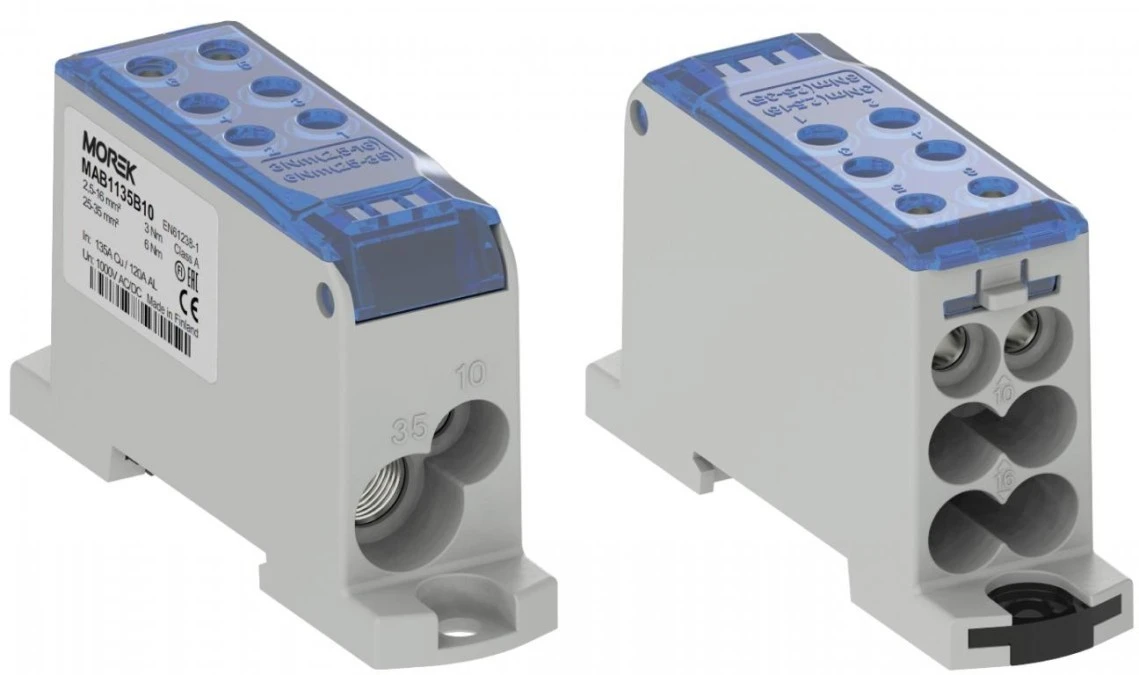6. Blok dystrybucyjny - rozdzielczy OJL135A niebieski AL/CU we:1x2,5-35mm2 /1x2,5-10mm2 wy: 4x2,5-16mm2/2x2,5-10mm2 1000V MAB1135B1 71.57
