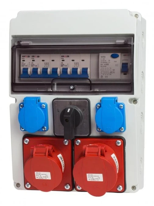 Rozdzielnica L-0-P 40A 1X16A 3P+N+Z 400V, 1X32A 3P+N+Z 400V, 2X16A 2P+Z 250V IP44 RSK-1 999606