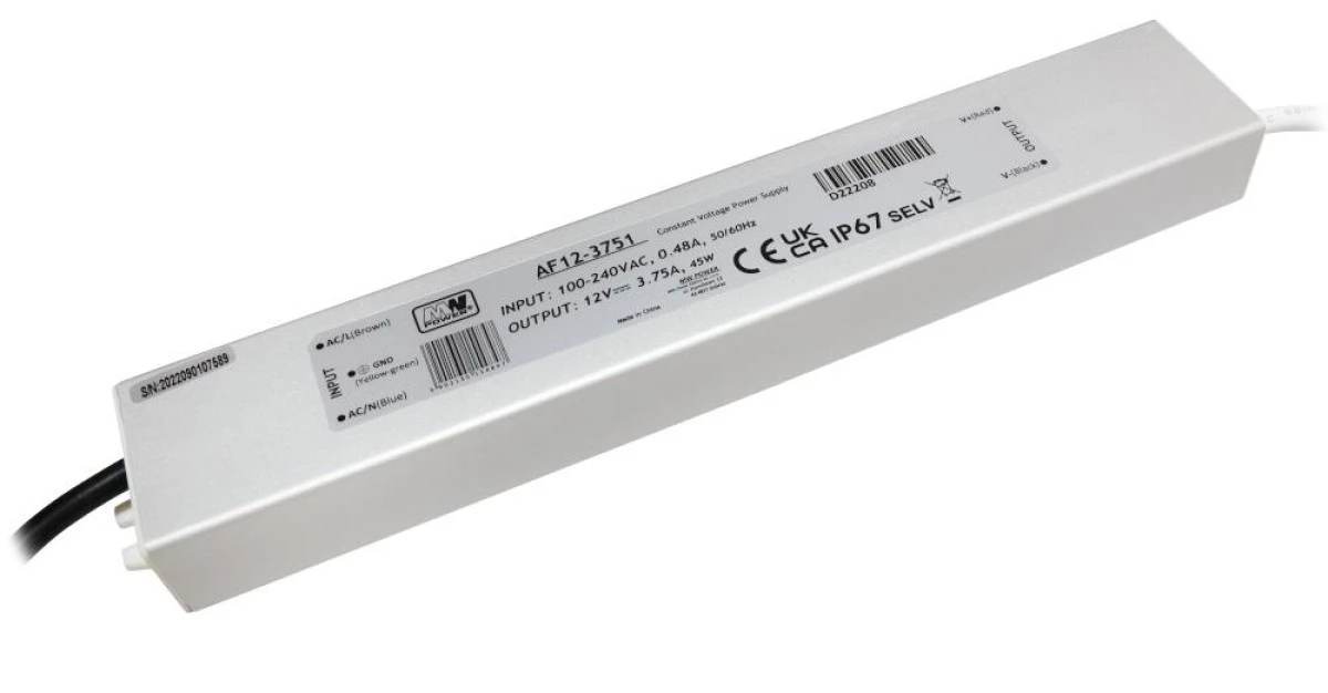 Zasilacz LED 45W 12V 3.75A metalowa obudowa IP67 AF12-3751 MW POWER