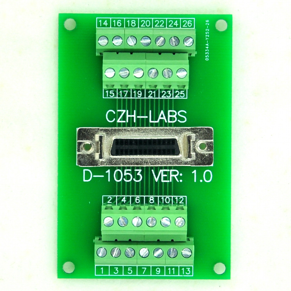 CZH-LABS 26-pin Half-Pitch/0.05" D-SUB Female Breakout Board, DSUB, SCSI, Terminal Module.