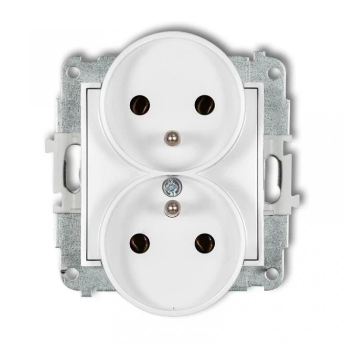 MINI Mechanizm gniazda podwójnego do ramki z uziemieniem 2x(2P+Z) (bez przesłon torów prądowych) biały mat 25MGPR-2z
