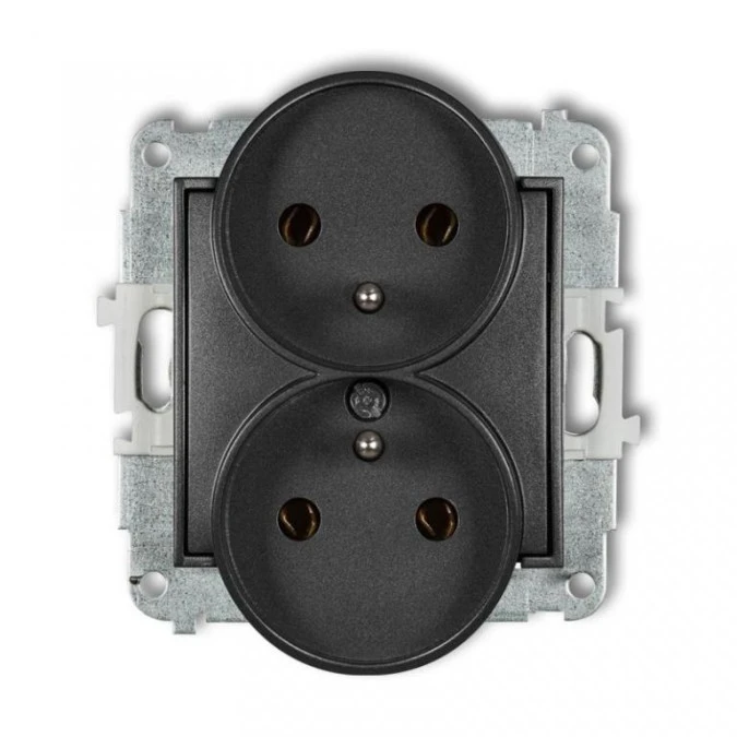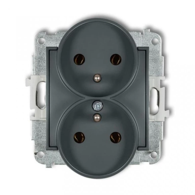 ICON Mechanizm gniazda podwójnego do ramki z uziemieniem 2x(2P+Z) (bez przesłon torów prądowych) grafitowy 11IGPR-2z