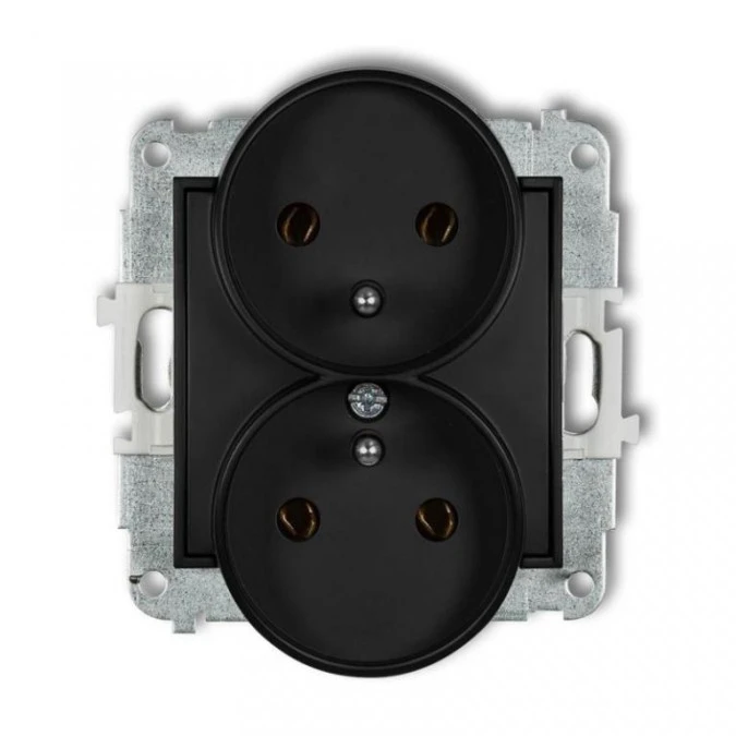 ICON Mechanizm gniazda podwójnego do ramki z uziemieniem 2x(2P+Z) (bez przesłon torów prądowych) czarny mat 12IGPR-2z