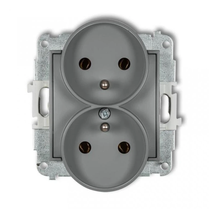 ICON Mechanizm gniazda podwójnego do ramki z uziemieniem 2x(2P+Z) (bez przesłon torów prądowych) szary mat 27IGPR-2z
