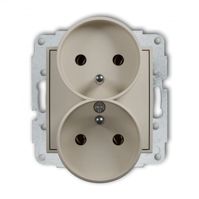 MINI Mechanizm gniazda podwójnego do ramki z uziemieniem 2x(2P+Z) (bez przesłon torów prądowych) taupe 60MGPR-2z
