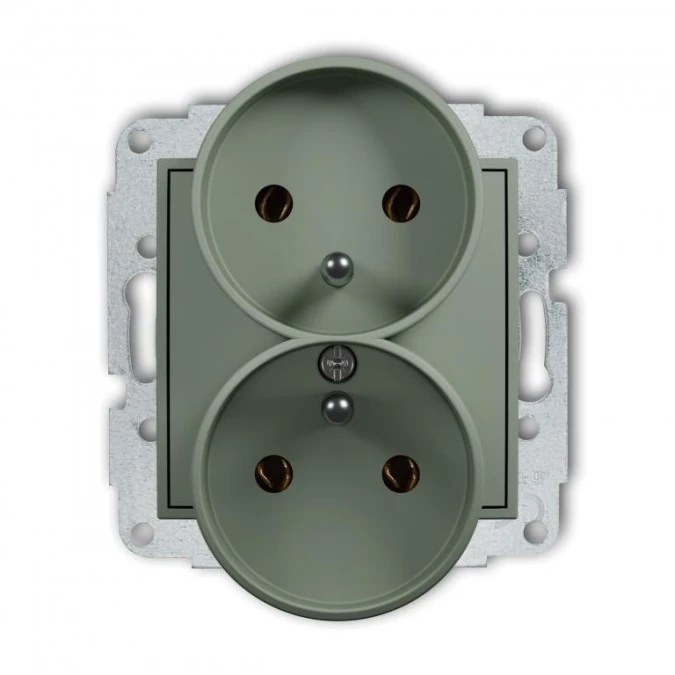 MINI Mechanizm gniazda podwójnego do ramki z uziemieniem 2x(2P+Z) (bez przesłon torów prądowych) szałwiowy 61MGPR-2z