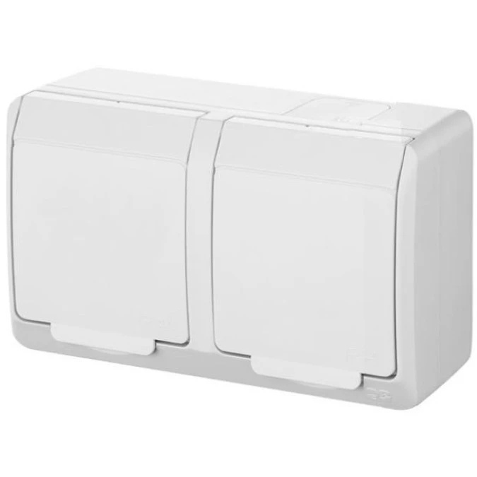 14. Gniazdo zasilające podwójne natynkowe hermetyczne IP44 białe z klapką białą 2x 2P+Z 16A HERMES ELEKTRO-PLAST NASIELSK 29.36