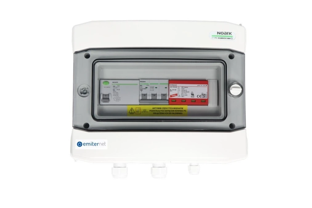 6. Rozdzielnica przył. hermetyczna EMITER z ogranicznikiem przepieć AC typ 1+2, 20A 3-F, różnic 40A/300mA, EM-307_AC 1160.70