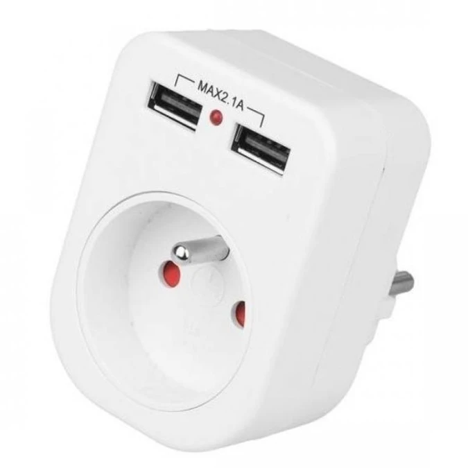 Rozgałęźnik sieciowy na 1 gniazdo 2P+Z 230V 16A + 2x USB A (5V / 2,1A)