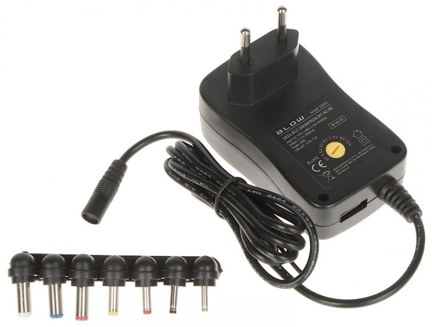 Zasilacz wtyczkowy uniwersalny 3-12V/2A/BL USB