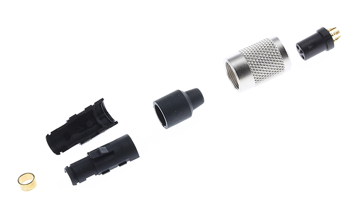 A male 3-pin IP67 black and silver sensor cable ...