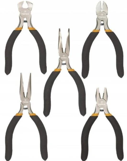Szczypce precyzyjne uniwersalne 115m, boczne 115mm, czołowe 115mm, wydłużone proste i odgięte 130mm (zestaw 5 szt.) 32D755