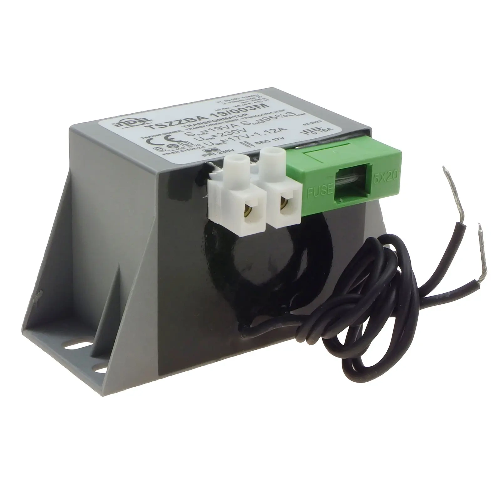 Transformator sieciowy TSZZBA 19/003M [230V/17V-1,12A] do alarmów, wyprowadzenia: przewody i listwa zaciskowa