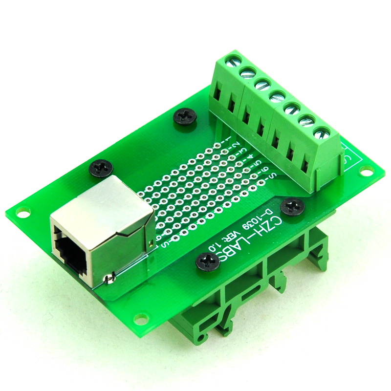 CZH-LABS RJ11/RJ12 6P6C Interface Module w/Simple DIN Rail Mounting feet,Right Angle Jack