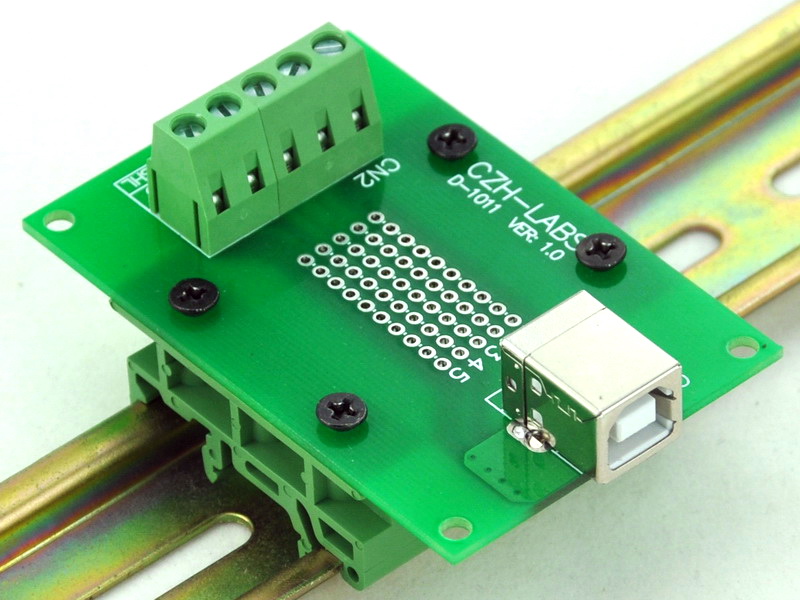 7. CZH-LABS USB Type B Female Right Angle Jack Breakout Board, w/Simple DIN Rail Mount Feet. 40.59