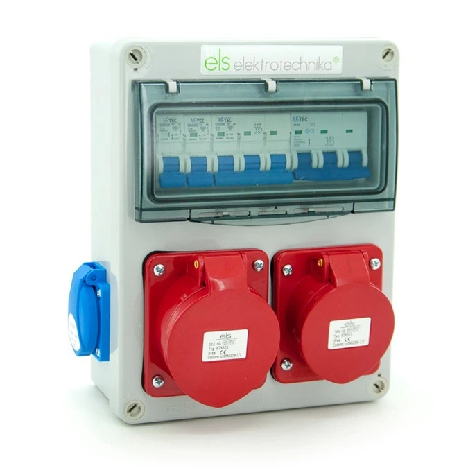 Rozdzielnica budowlana 32/5 + 16/5 + 2*GS 230V + zabezpieczenia, zamykana obudowa ABS IK10 IP65, N21B11B1ABS