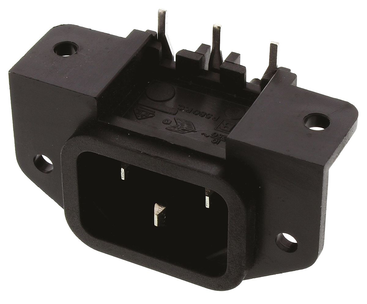 Złącze IEC IEC C14 Montaż panelowy, montaż na płytce drukowanej Męski 10A Kąt Proste liczba bezp None Lutowane Bulgin