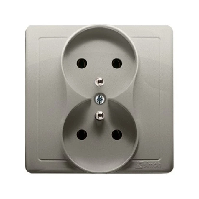 1. Simon Basic Gniazdo podwójne z/u kompletne z przesłonami torów 16A 250V satyna meta 29.48