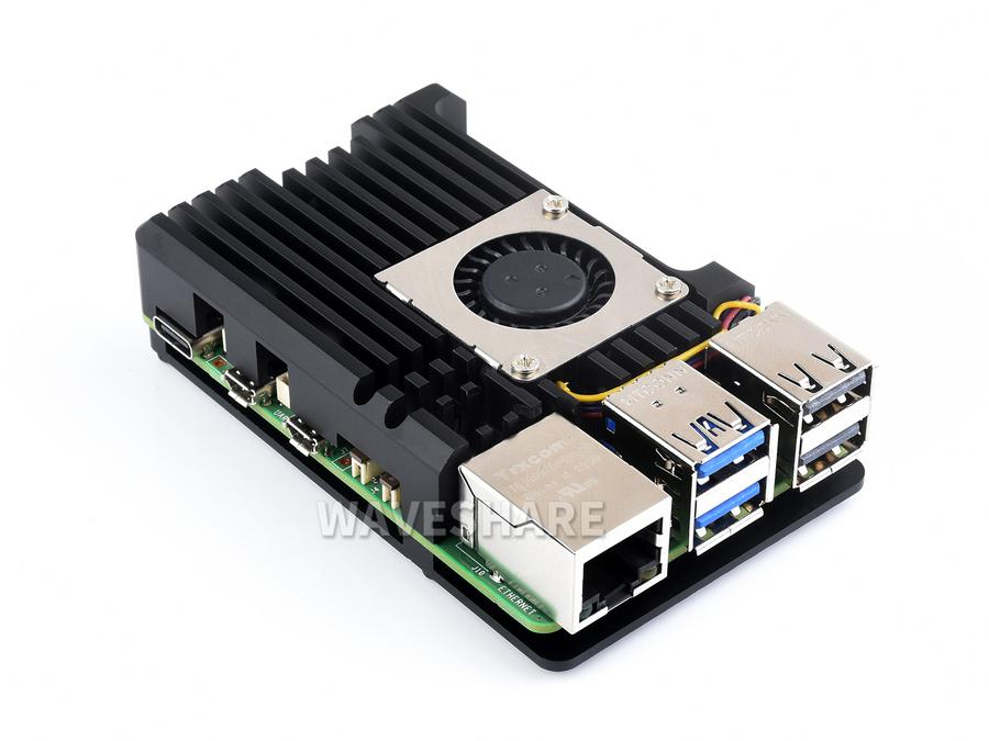 Waveshare Aluminium Alloy Case (H) for Raspberry Pi 5, With Temperature-Controlled Blower Fan