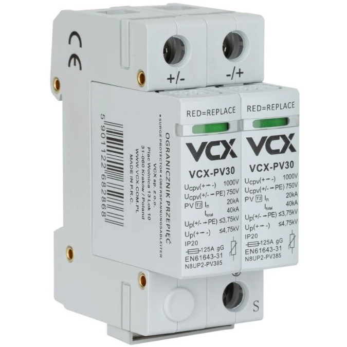 Ogranicznik przepięć SPD DC 1000V C PV30 (Typ 2) 2P 20kA/40kA fotowoltaiczny VCX