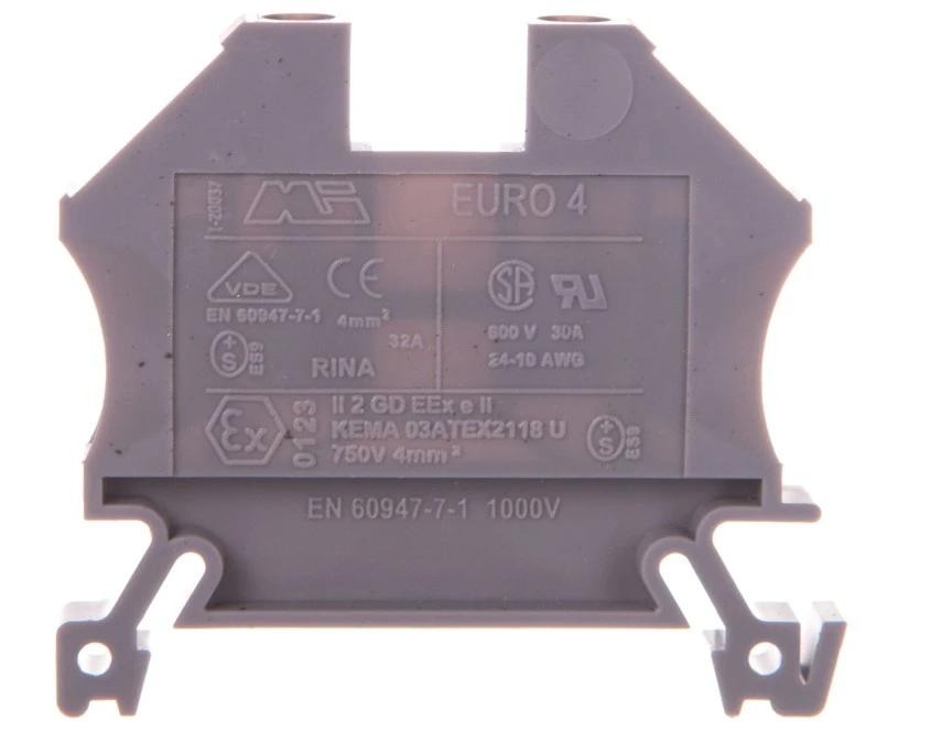 1. Złączka szynowa 2-przewodowa 4mm2 szara EURO 43409 2.72