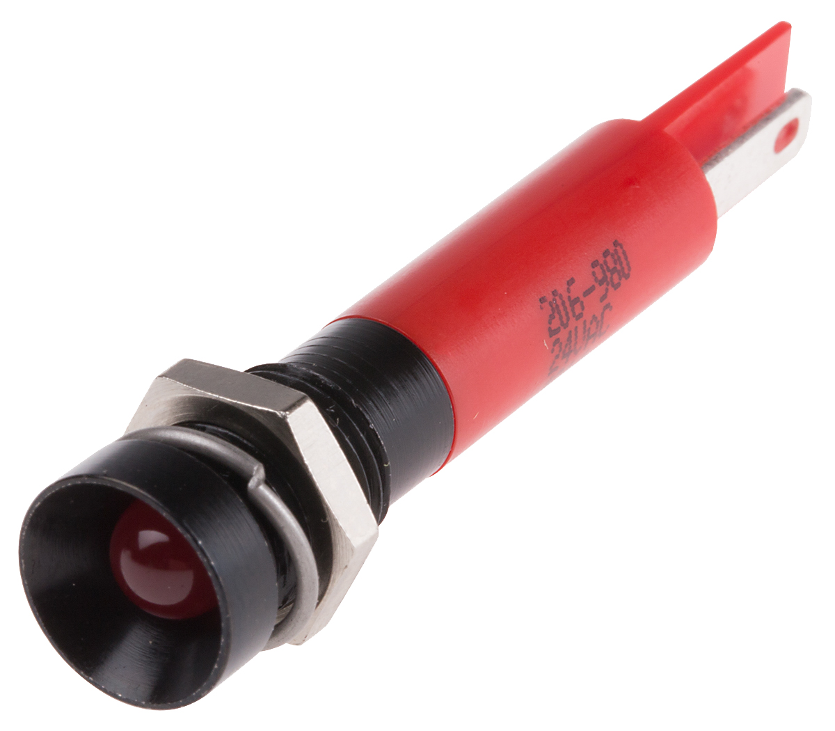 10. Lampka kontrolna do montażu panelowego 24V ac, czerwona 8mm LED Końcówka lutownicza RS PRO 37.86