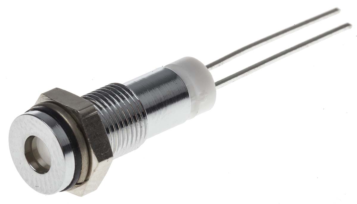 9. Lampka kontrolna do montażu panelowego 2V dc, biała 8mm LED Chrom RS PRO 37.69
