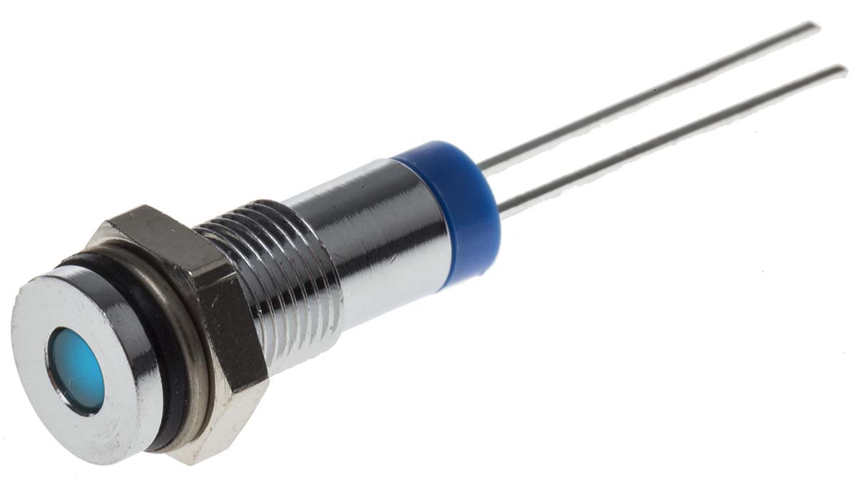 8. Lampka kontrolna do montażu panelowego 2V dc, niebieska 6mm LED Chrom RS PRO 37.69