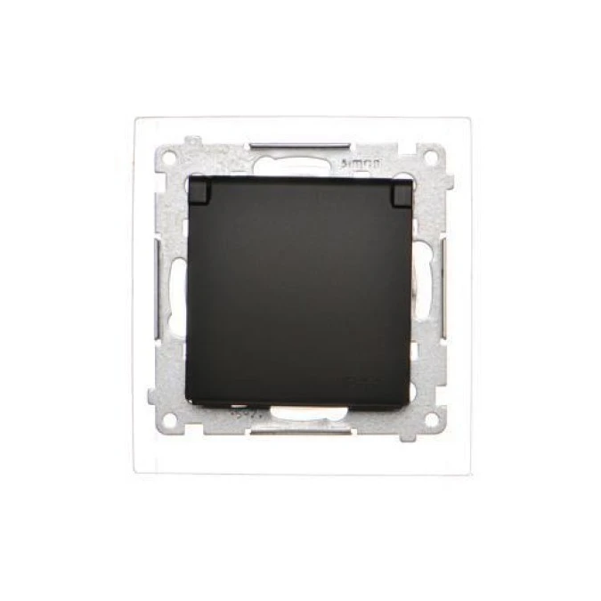 Simon 54 Gniazdo wtyczkowe IP44 klapka w kolorze pokrywy do ramek premium czarny mat DGZ1BZ.01/49
