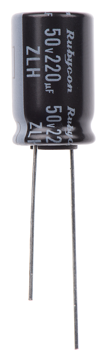 Kondensator 220μF 50V dc Radialny, Otwór przelotowy Rubycon roztaw: 5mm 10 (Dia.) x 16mm