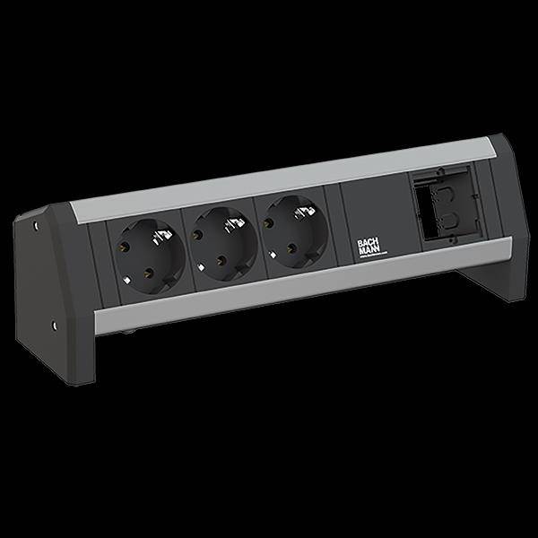 339.1002 DESK desk socket, 3-way, type F, with mounting brackets