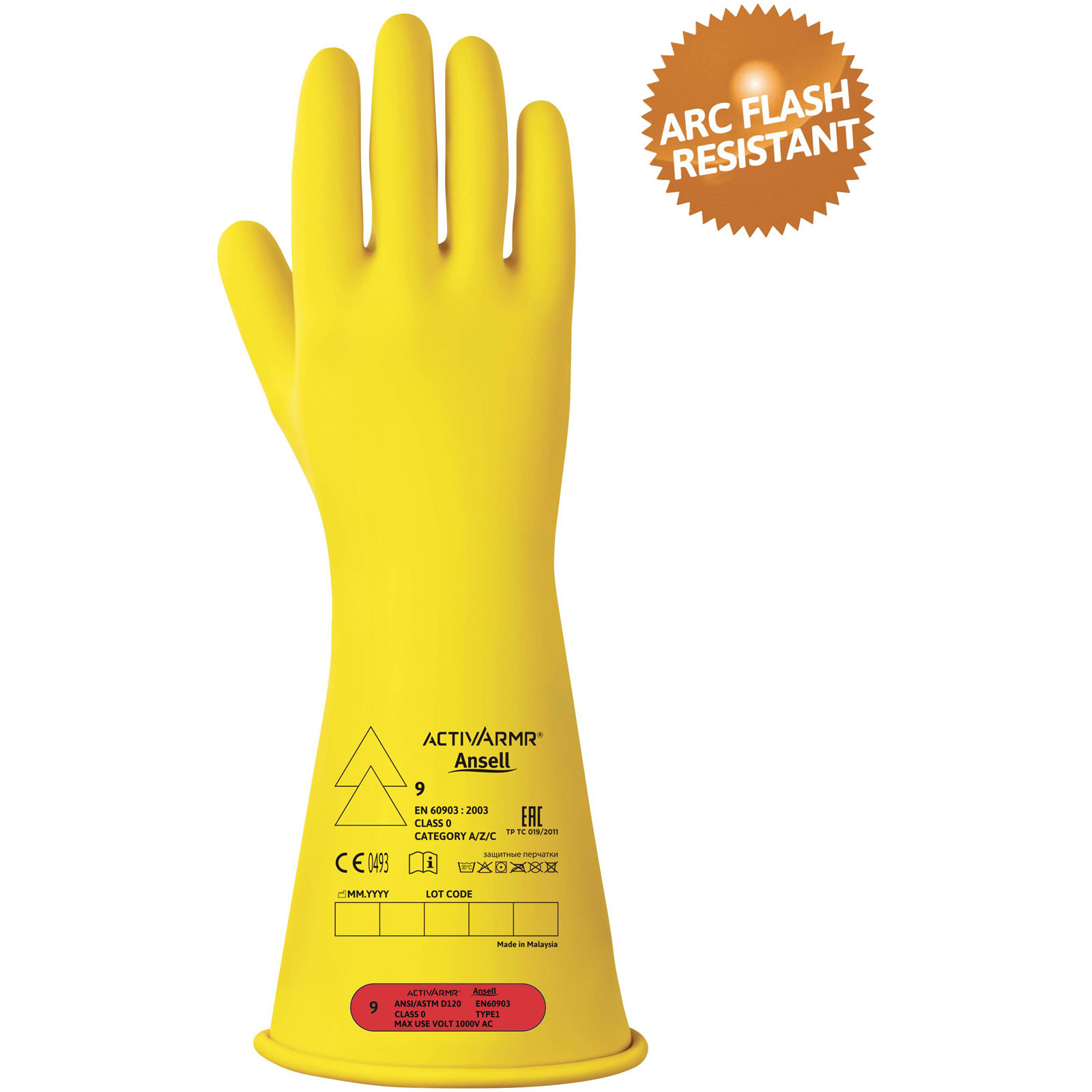 Ansell RIG014Y090 Activ ARMR Electricians Gauntlet Size 9 1000V Rated