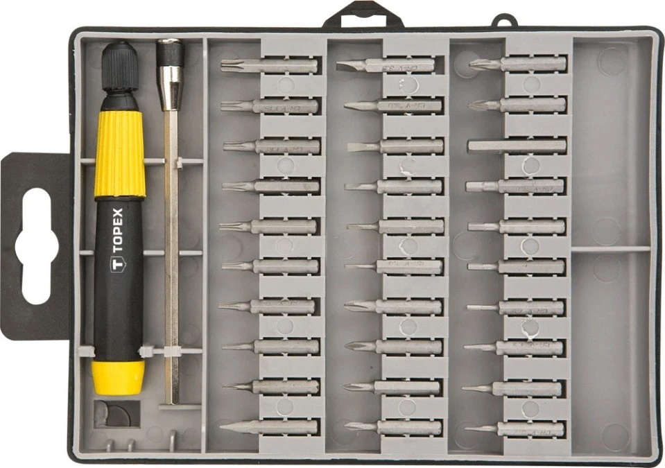 Końcówki wkrętakowe precyzyjne z uchwytem (zestaw 32 szt.) 39D555