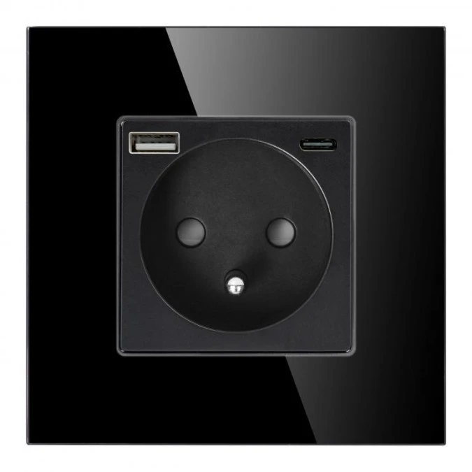 1. Gniazdo pojedyncze 2P+Z, USB-A + USB-C, PD, max. 20W, czarny,OR-AE-13308/B 65.74