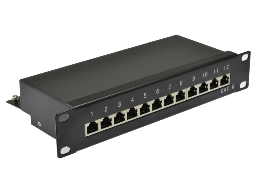12. Patch panel RACK 10 cali kat.6 12p FTP z półką 1U czarny NEKU 109.19