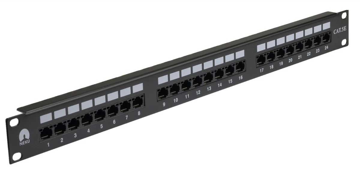 11. Patch panel RACK 19 kat.5e 24p UTP z półką 1U czarny NEKU 109.01
