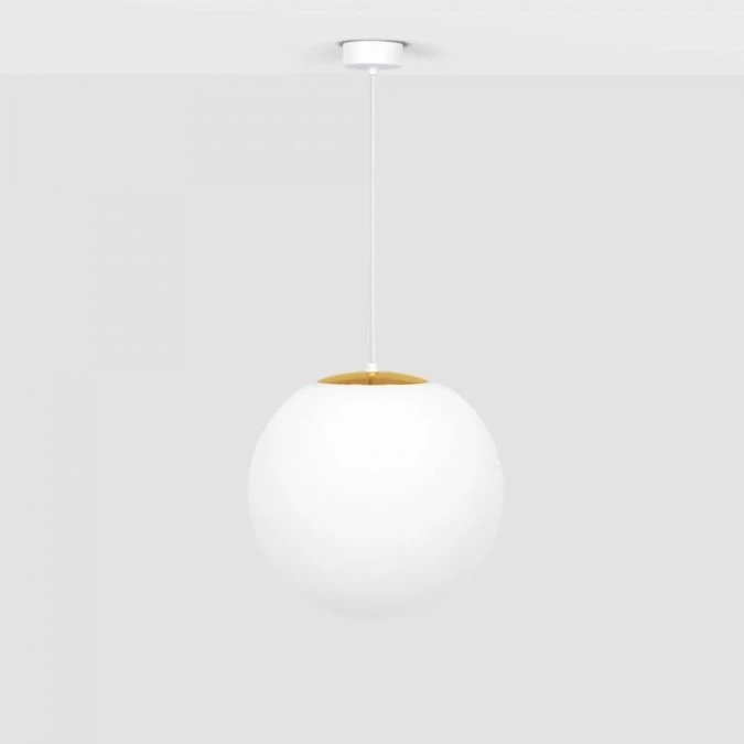14. Lampa wisząca ELMO, szklana kula Ø30 cm, biała ze złotymi dodatkami K-5312 Kaja Lighting 288.26