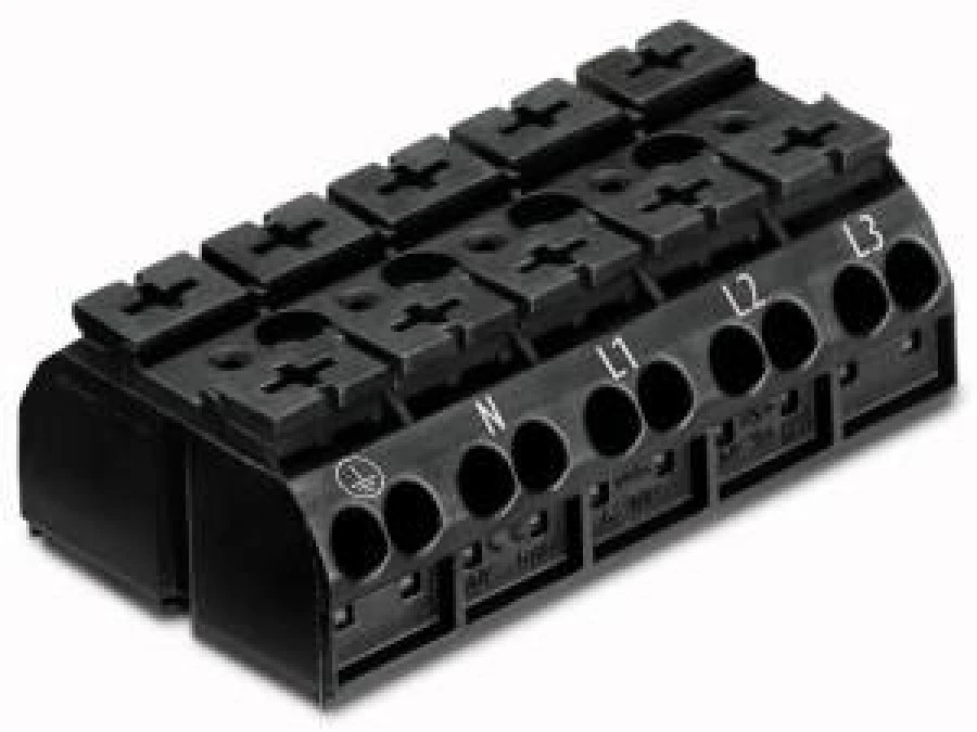 Blok zasilający 5-biegunowy czarny nadruk PE-N-L1-L2-L3 862-1505 /200szt./