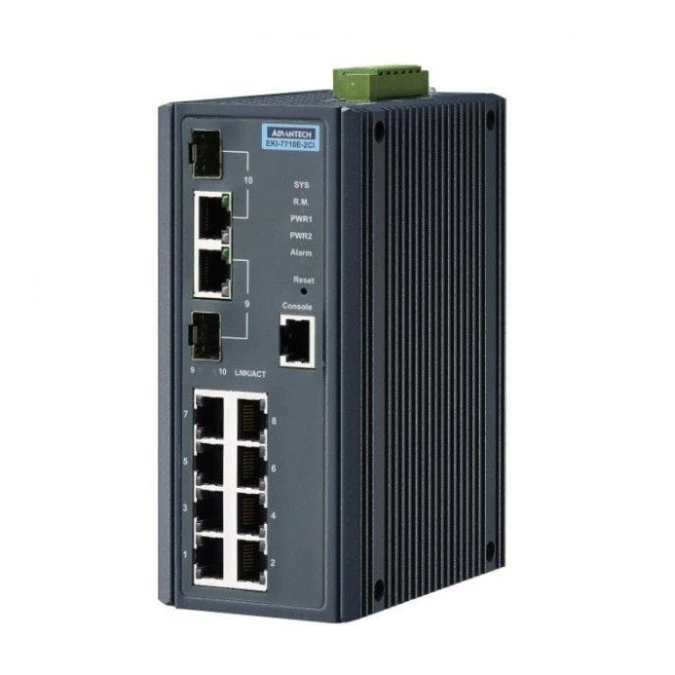 Zarządzalny switch przemysłowy - 8 portów Fast Ethernet, 2 porty gigabit Combo RJ-45/SFP EKI-7710E-2C-AE