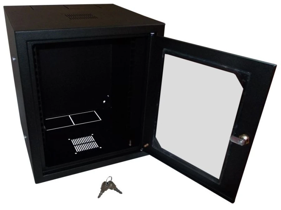 14. Szafka wisząca 10 cali 6U głębokość 300 mm, niedzielona, drzwi szklane, kolor czarny 376.79