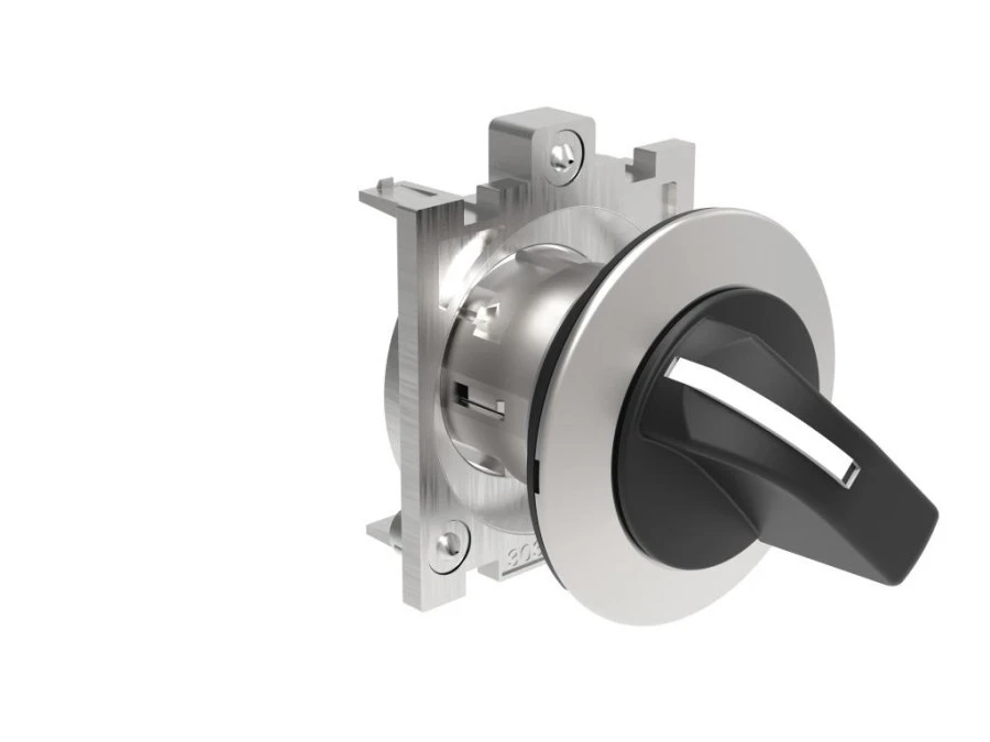 8. Metalowy przełącznik płaski 3 pozycyjny 1-0-2 bez samopowrotu fi30mm pokrętło krótkie LPFS130 90.75