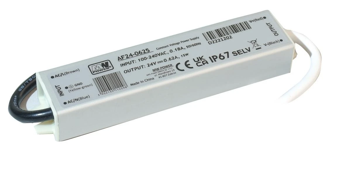 Zasilacz LED 15W 24V 0,62A metalowa obudowa IP67 AF24-062 MW POWER