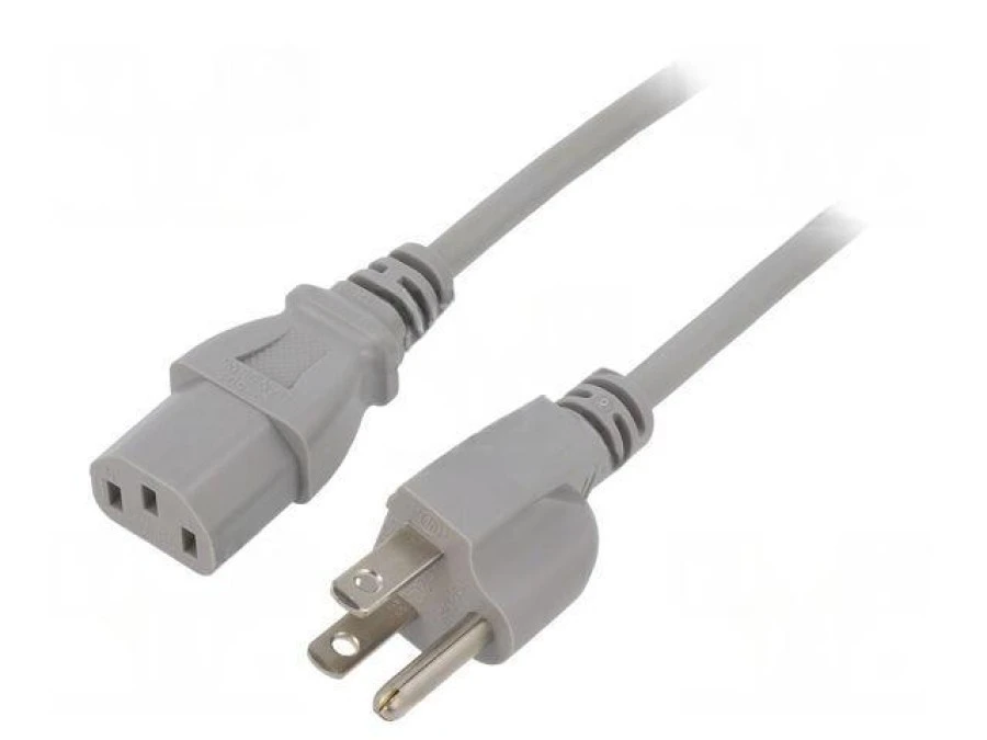 13. Kabel: 3x0,75mm2, IEC C13 żeński,NEMA 5-15 (B) wtyk, 1m LT-832+501 VCTF 3X0.75 1M GRY 19.57