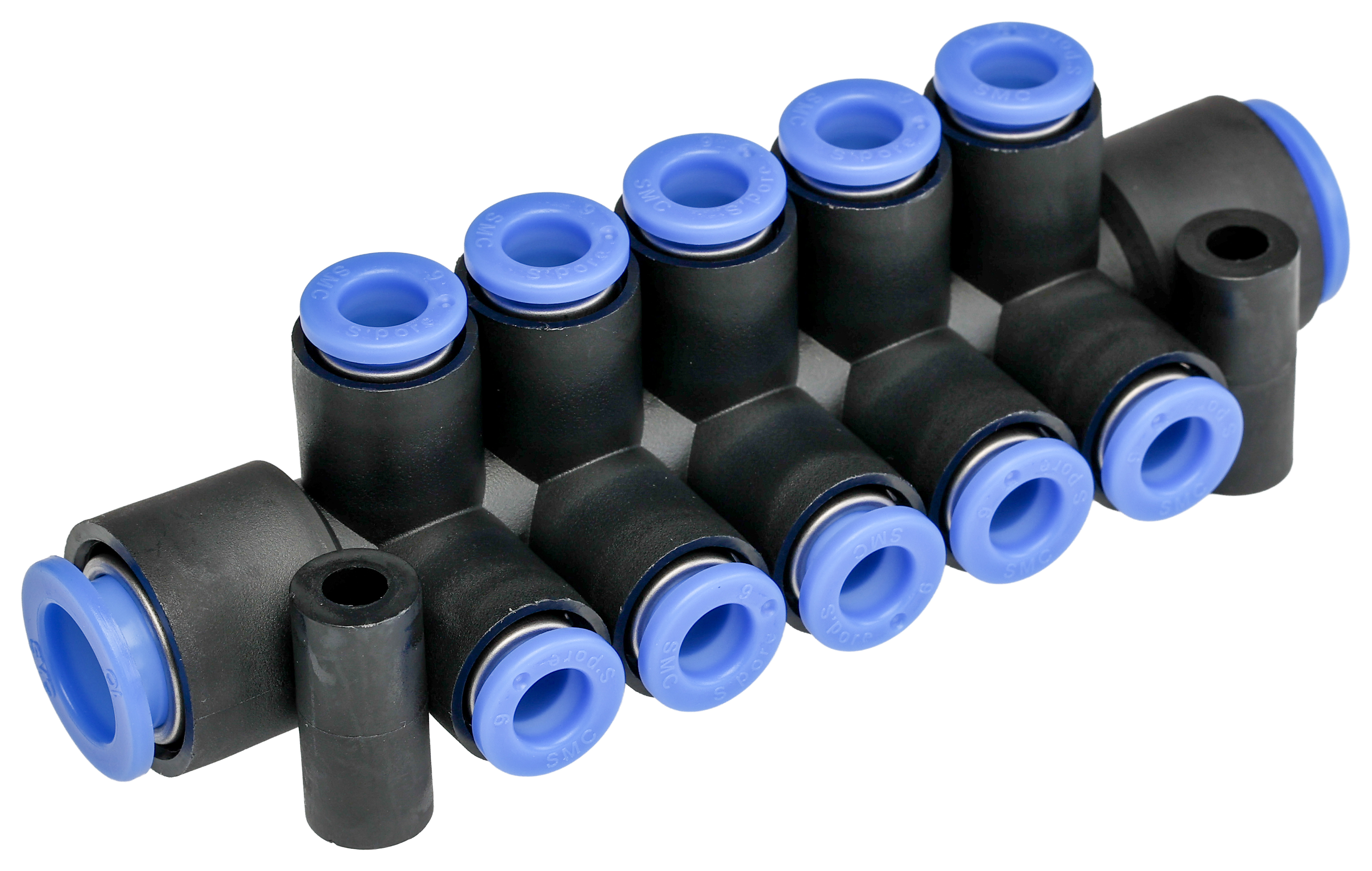 Rozdzielacz pneumatyczny liczba wylotów 10 wylotowe Wciskane 6 mm PBT wlotowe Wciskane 10 mm liczba wylotów 1 1 MPa