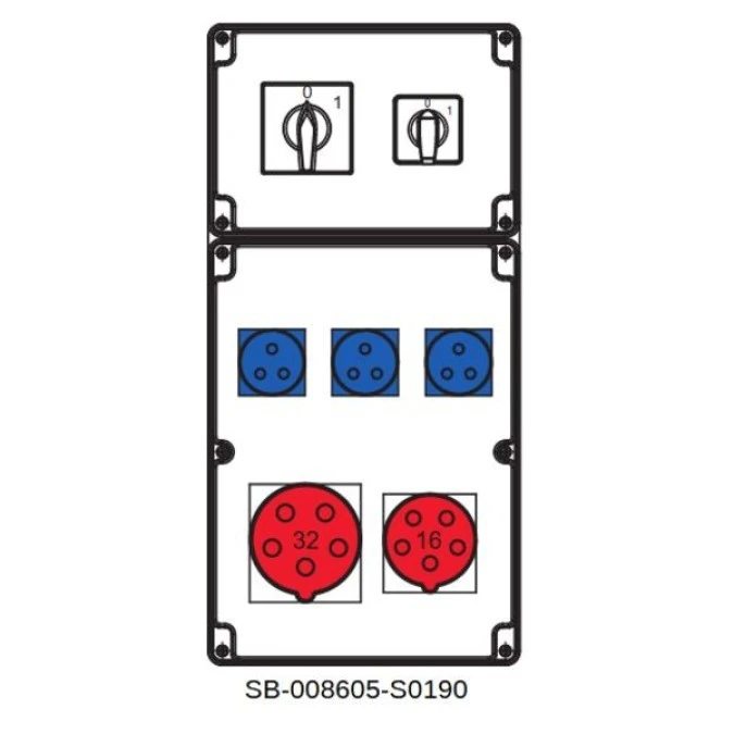 Rozdzielnica 0-1(32A) 0-1(16A) 2x5x32A 1x5x16A 2x3x16A INA=32A SB-008605-S0260-54