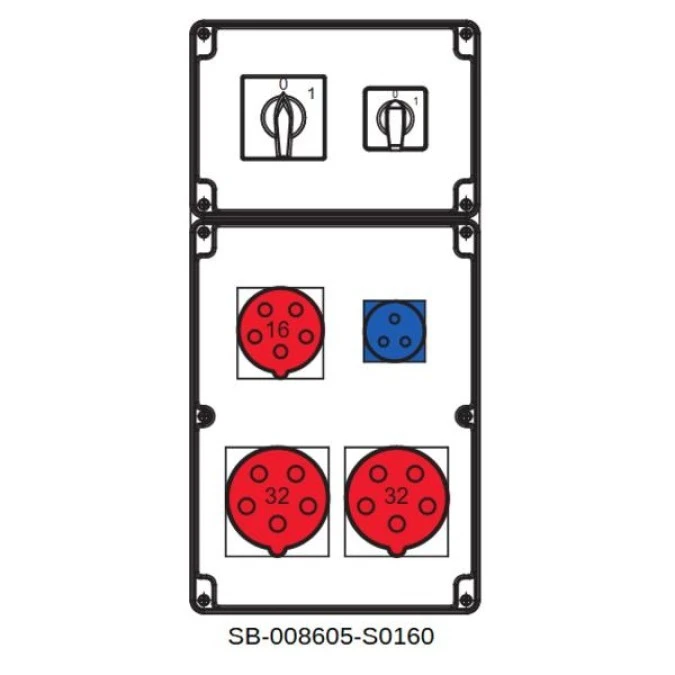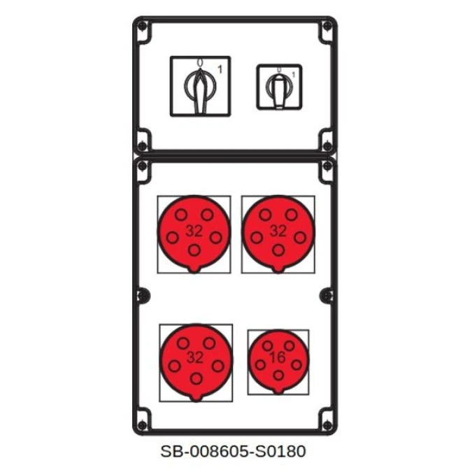 Rozdzielnica 0-1(32A) 0-1(16A) 2x5x32A 1x5x16A 1x3x16A INA=32A SB-008605-S0160-54