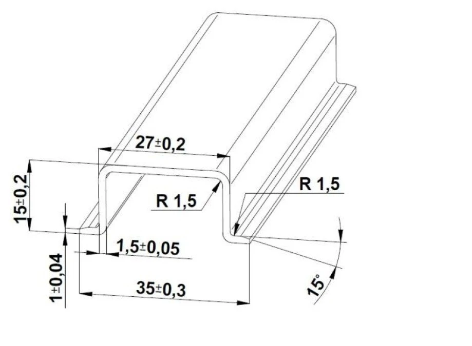8. Szyna TS 35x15 ocynk (pełna) - 2000 mm (za szt.) 18.13