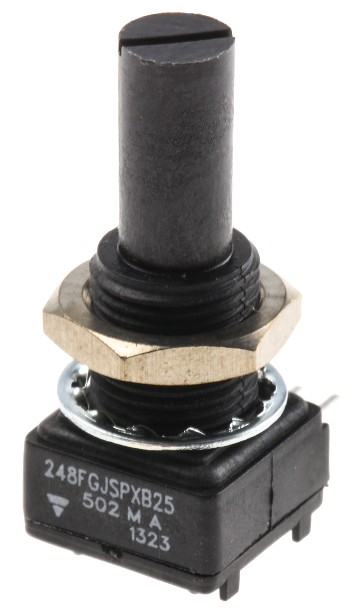 Potencjometr 5kΩ typ Obrotowy Vishay średnica wału 6,35 mm 0.5W długość wału 22.2mm Montaż panelowy, Przewlekany